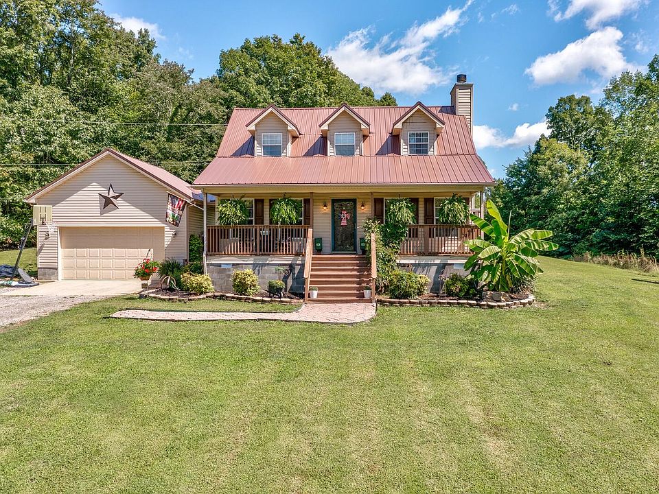 Newly Painted light grey- 3 beds,2 baths settled on 6.87 wooded acres. The front porch invites you into the cozy home with a wood-burning fireplace. The kitchen includes a refrigerator, stove, and dishwasher. Hardwood floors on the main level as well as the primary bedroom featuring a private en-suite bathroom. 2 bedrooms on the second floor share a full bathroom with dual vanity and shower. New upgrades include metal roof (2 years), AC replaced in 2018, ultraviolet light system to clean air, and hot water heater (3 years). A new sliding glass door opens to the extended back deck with a 50 amp breaker for a hot tub! New garage door opener for the attached Cape Cod garage. Metal 40 x 80 shop features a new door, wood stove, wired for 220 & 110, heater, and security system in house and shop.