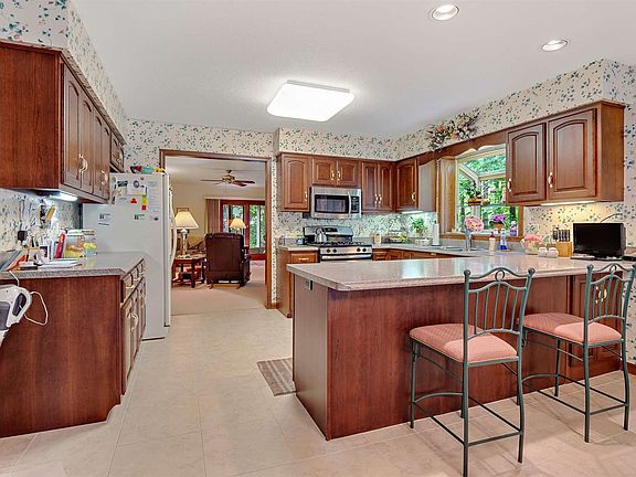 Welcome home. You're going to love the amount of closet, and storage space in this spacious one & a half story home. The 16 x 7 foyer immediately greets you with hardwood flooring. The 14 x 11-foot kitchen is a chef's dream with beautiful cabinets, all appliances to remain, plenty of counter space as well as ceramic tile. Separate living and family rooms as well as a formal dining room. The family room has a beautiful gas fireplace. Huge main floor master bedroom with a large bath with jetted tub and double vanities. Top that off with a large walk-in closet. Oversized laundry room with washer & gas dryer that remains. Six-panel solid wood doors throughout the home. You can enjoy your morning coffee and favorite adult beverages on the gorgeous 15 x 13 three season room. Walk-in attic access from the upstairs hallway. Improvements include newer appliances, countertops, exterior painting of porch, entrance door, rail and porch floor.