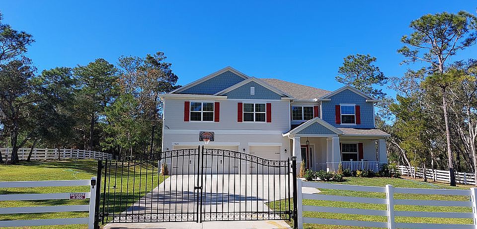 Why build if your dream home is already here! BETTER THAN A MODEL HOME...EVERYTHING ABOUT THIS HOME IS STUNNING!!! Nearly new with a TON OF UPGRADES and located in the highly desirable community of Royal Highlands. This beautiful dream home sits on almost an acre of cleared land with mature landscape surrounded by a stunning PVC 4-rail white ranch fence (2021) with a double automatic gate for total privacy. The beautiful paved front porch has an inviting seating area. The home features nearly 4100 SF of luxurious living space with a fantastic open floor plan. This Gorgeous estate home has 6 bedrooms / 4.5 baths / Oversize Bonus Room / Office-Den & 3-Car Garage. Off the 24-foot ceiling, the foyer is a private office with nice French doors making working at home delightful. You will enjoy recessive lighting throughout all main living areas. You will be able to enjoy plenty of daylight, as there are many windows throughout and a sliding door for access to a huge 10x35 ft screened paved lanai. There is a dramatic stairway to the second floor, with a beautiful balcony that is simply breathtaking. You will be able to enjoy the waterproof Rigid Core SPC Ashen Grey flooring on the entire first floor, including the kitchen, bathrooms, and laundry. The house’s open design is perfect to entertain, or simply live your best life at home. There is nothing more you could need from a home, this home also offers 2 master bedrooms, one on each floor. Downstairs you will find the master with a walk-in closet and sitting area. This master suite has a pool bathroom. The kitchen has Granite countertops and stainless-steel appliances. In the kitchen, you will be able to enjoy 42inch white cabinets and a large kitchen island. Thought the home, starting with Maytag washer/dryer combination, programable thermostats, 4-security Camera connections, and LED lighting. The formal master suite is located on the second floor with a sitting area, beautiful windows to enjoy your paradise. The master bathroom has a garden tub, with a walk-in shower, dual vanity, two private lavatories, and a large walk-in closet. There are 2 New AC units, 2 hot new water heaters, 2 new electrical panels, and a new well. There is also a Portable Generator plug-in connection outside the house in case of a power outage. The full lot has been cleared and fenced giving you and your family plenty of space, so you can enjoy every inch of it, plenty of space for entertainment around the oversize fire pit. An oversized 3-car garage with plenty of height and storage. The back yard and front are fully illuminated, also the house has seamless gutters. There are no Homeowners Association (HOA) or Community Development District (CDD) fees, also there is no monthly water bill since the water is coming from a well which by the way provides soft and 100% natural water!!! Centrally located, only minutes away from shopping centers, and schools