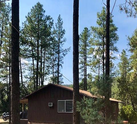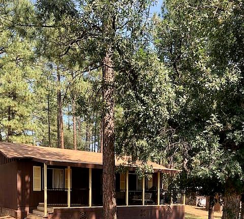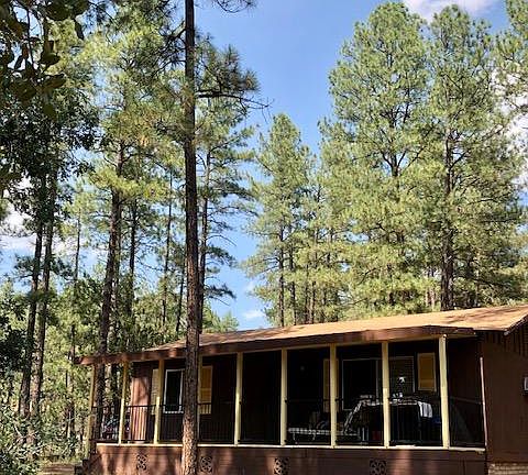 This is the mountain home everybody is looking for: solid home w/good bones&block foundation. Tons of room to expand. No HOA. Large lot accommodates any size RV. Plenty of room to add garages, guest house, outbuildings, gardens and more. Gorgeous setting; flat, usable, nearly 1/2 acre, beautiful views, soaring pines, nice neighbors and glorious privacy. Bonus! home is located right across the street from a pond and Seller will provide home warranty with full price offer. Home to be sold as-is, all appliances convey along with most furniture. Don't wait; not many listings have so much room to build new or add on. Septic is located in a convenient area so will not have to be moved if planning a garage or guest house. Or put a new manufactured home on lot and keep existing as guest house.