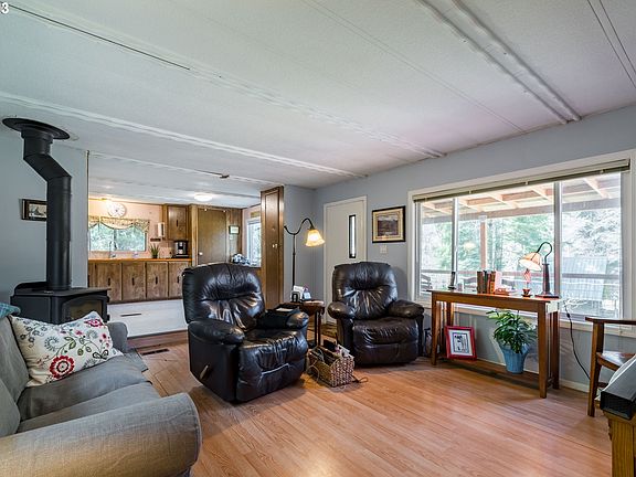 Don't miss your chance at almost 3 acres of an absolutely tranquil setting! Large fir trees surround the home giving a wooded and private feel to the setting. Fruit trees, a chicken coop (currently with 7 hens) as well as a fenced in garden area supply eggs, fruits and vegetables through much of the year. Home is in good condition with a newer metal roof, a new wood stove as well as fresh exterior paint. There's also a 75 year old cabin on the property that can be used as a home office or hideaway that has a loft area ready accommodate any overnight guests offering them their own space and privacy. Great property at a great price!