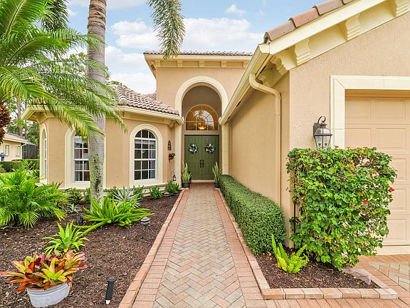 Welcome to this exceptionally maintained 3-bedroom, 3-full-bath, 2 car garage home located in the gated community of PGA Village. This home located on a spacious pie shaped lot features a newer 2022 Heated Pool, Spa and Lanai overlooking a beautiful scenic preserve. The home features 12ft ceilings, new premium laminate flooring in all bedrooms, newly painted interior, upgraded recessed lighting and a new efficiency A/C. The kitchen offers plenty of counter space for entertaining, lg breakfast bar, granite counter tops, SS appliances, 42'' wood cabinets and a pantry. Enjoy meals in the kitchen dining area looking out the glass bay window. The primary bedroom overlooks the pool/spa and preserve with sliding doors for easy access. Features two walk-in closets, dual vanities spa like soaking tub and lg walk-in shower. The lanai offers plenty of covered area to enjoy the outdoors or watch some TV. PGA Village offers COUNTY TAXES ONLY. There are two MEMBERSHIP OPTIONAL golf courses in PGA Village. The PGA Golf Club and a private club The Legacy Golf & Tennis Club. The Island Club offers lots of activities, pickleball, tennis, exercise rooms, gym, ballroom, billiards, card rooms and more. 45 min to Palm Beach International airport. Minutes from Cleveland Clinic Hospital among others, restaurants, shopping and parks. Home to the Mets spring training and Minor league team. This a great home..great location. Easy to schedule an appointment.