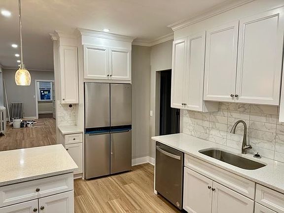 Welcome to this renovated multi family located in the Woodcliff section of North Bergen. 1st floor unit with 1100 square feet of living space that has been redesigned with an open concept floor plan. This unit features: New Luxury vinyl plank flooring throughout, elegant crown molding in all rooms accenting the high ceilings, heated Sun porch, all new energy efficient vinyl windows, New bathroom with modern polished porcelain tile on walls and shower, new kitchen with 42" shaker-style cabinets, brand new stainless steel appliances, quartz countertops and tile backsplash. Eat-in-kitchen also has quartz countertop breakfast bar. 2nd floor features: Living Room, Sun Room, dining room, eat in kitchen/ pantry, back porch, full bathroom and two bedrooms. Walls and ceilings totally refinished. Walk-up huge attic. Perfect for additional space or storage. Short walk to NYC buses and James J Braddock Park. Basement with separate entrance . New Electric/heating