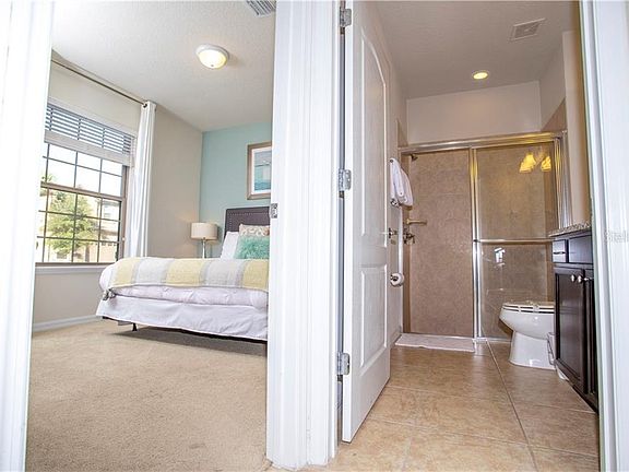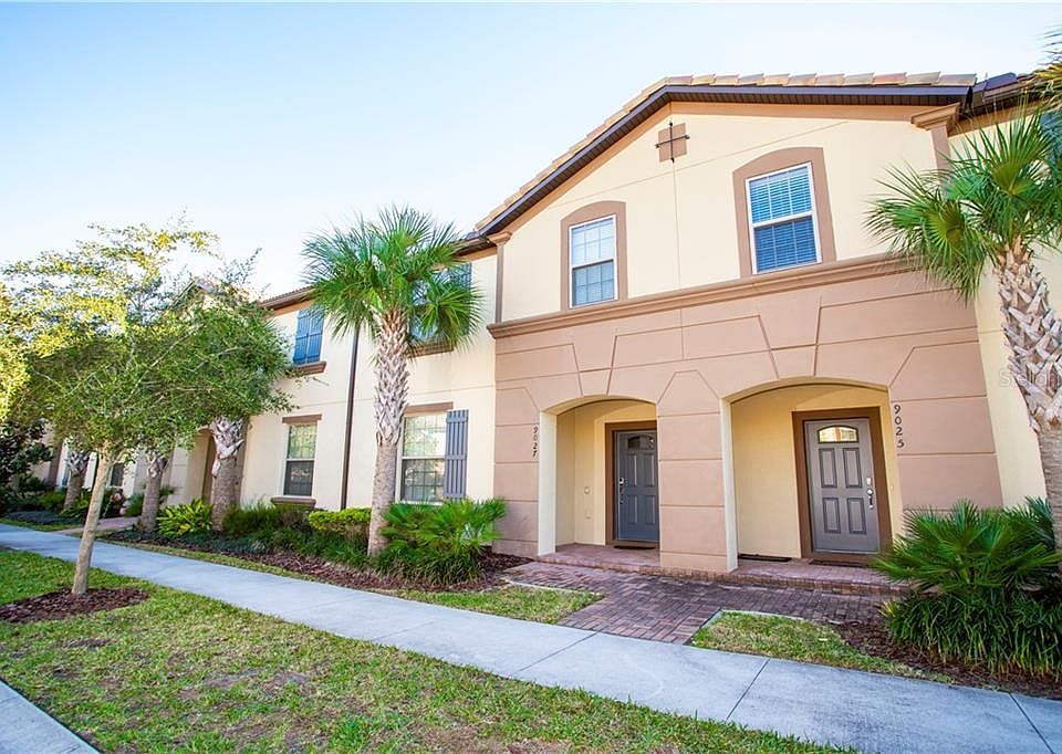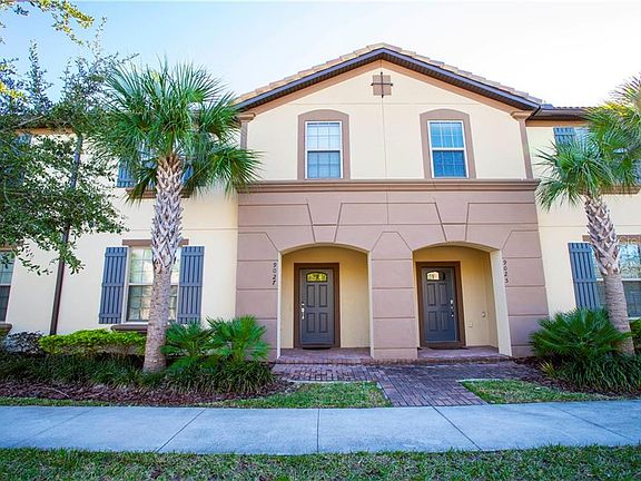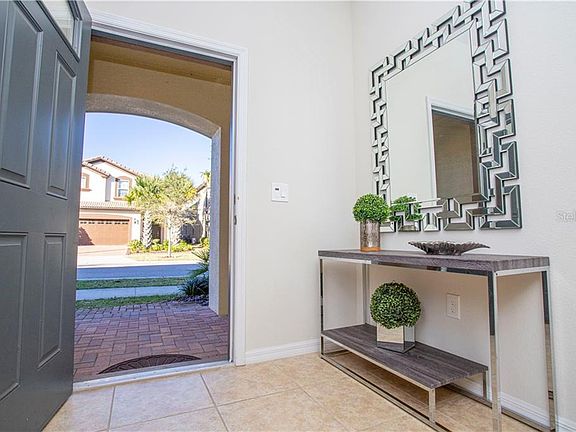**PRICE TO SELL** Beautiful 5 bedroom Townhouse, walk to the Clubhouse! **FULLY FURNISHED, VACATION TOWNHOME** . All appliances are included. Pristine condition and upgraded garage floor. Pool faces south and gives your more sunlight! It has 5 bedrooms, 4 bathrooms and a half bath by the pool. This lot gives you more parking space in the front of the property and street parking is also allowed besides the private garage and driveway. The spacious 2 story layout provides open plan living, with the living room opening directly onto the oversized lanai and screened private pool with brick paved deck. Going upstairs to the second floor find the other 4 bedrooms arranged around a central gaming and TV loft. The spacious and filled with natural light MASTER SUITE offers a double sink vanity and stand up shower with enclosure. Bedrooms 3 and 4 are served by one full bathroom and Bedroom 5 offers an ensuite bathroom. The clubhouse features a stunning resort-style pool with lazy river, a water playground, hot tub, playground, soccer field, basketball court, sand volley court, the Clubhouse includes a bar and restaurant, gym, arcade, and shopping market.