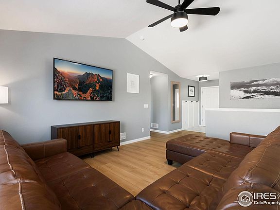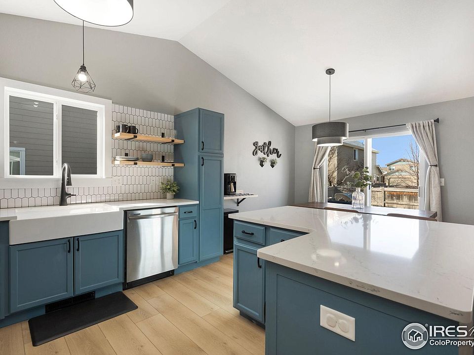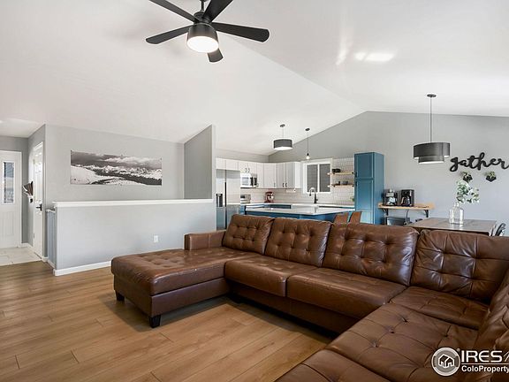 Very well maintained ranch-style home with finished basement! Updated kitchen with quartz counter tops, farmhouse sink, stainless appliances and stylish open shelving, new easy care luxury vinyl plank flooring, custom light fixtures and Kohler faucets in kitchen and primary suite. All kitchen appliances are included as well as stackable washer and dryer for a great value. Primary closet has great built-ins to expand your storage space. Relax on the oversized back patio; new sod in the back yard and a new irrigation system in 2022. Raised garden beds give the green thumb buyer a place to create wonderful flower or vegetable gardens. Garage is a great place for storage with built-ins as well as the unfinished space in the basement with more built-in storage. The finished basement offers a great play and entertaining area complete with electric fireplace and bar with included bar refrigerator. An amazing space with lots of possibilities! Built-in Murphy bed in basement bedroom make this the perfect place for an office - easy to turn into a guest room quickly. Programmable thermostat adds comfort to your life by making temperature adjustments automatic. The Wellington Community Park is very close and offers baseball fields, playground area, dog park and tennis courts - a great amenity just east of this home. One year home warranty offered to add to your peace of mind!