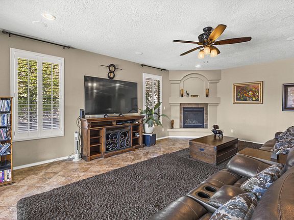 Welcome to your dream home in the prestigious Mirehaven! This stunning, well-maintained home features 3 spacious bedrooms plus a dedicated office. The open living area boasts high ceilings and a cozy fireplace, seamlessly flowing into a gourmet kitchen equipped with a huge island for culinary adventures. With 2.5 beautifully appointed baths, window shutters, tankless water heater, 3-car tandem garage & OWNED SOLAR SYSTEM this home offers both luxury and functionality.The large, private backyard is perfect for family gatherings and relaxation. Enjoy the covered patio with its own fireplace, easy-care landscaping with automatic sprinklers, and a storage shed. Plus double gates for backyard access. Steps from the park this home isn't just a place to live, it's a lifestyl