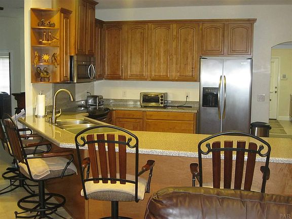 Peace and quiet yet minutes from Nine Mile Road. With in 15 minutes of NFCU. This home offers two master suites. Large living area. Living room has 10 ft ceilings beveled mirror and wet bar with sink. Great room has step ceilings from 9 to 10.4 foot ceilings,recess lighting, and French doors that open to a huge patio. Gorgeous arched walls. Wood double doors to office/den or could be a bedroom. Nice blinds through out. Dinning room has beveled mirror with lit wall sconce on each side and 10 ft step ceiling and big windows makes this room feel exquisite. Awesome kitchen with plenty of cabinet, wall pantry, wall oven plus range, stainless fridge and dishwasher, Deep sink and built in microwave finished off with recess lighting and a breakfast bar over looking the great room. Laundry room ... oh yeah ... sink, folding counter, cabinets, room for fridge and freezer finished with a large appliance closet. Master bedroom has step ceiling to 9.8 ft. recess lights with a pocket door to bathroom where you will find his and her lit closets, double shower, his and her vanities with dressing area, water closet and a beautiful scalloped Jacuzzi tub. Second master sweet just as nice, with step ceiling, walk in closet, shower, Jacuzzi tub with seat, water closet, double vanity, pocket doors and French doors that open to a private covered patio with wood and rod iron finish. What a covered private screened (see out but you can not see in) windowed patio with double door exit. The patio opens to Main master, half bath , living room and great room... think of entertaining... open the French doors and add an additional 560 sq ft of entertainment space. Garage is oversized with shelving, exit door, garage door opener, has a wash sink & a tiled shower so you can just leave the mess outside. Home has video security system that will stay. Over and acre plus a 1/3 acre easement , 12x20 workshop w/ power and water, sprinkler system only at fruit trees.House has never had pets or smokers