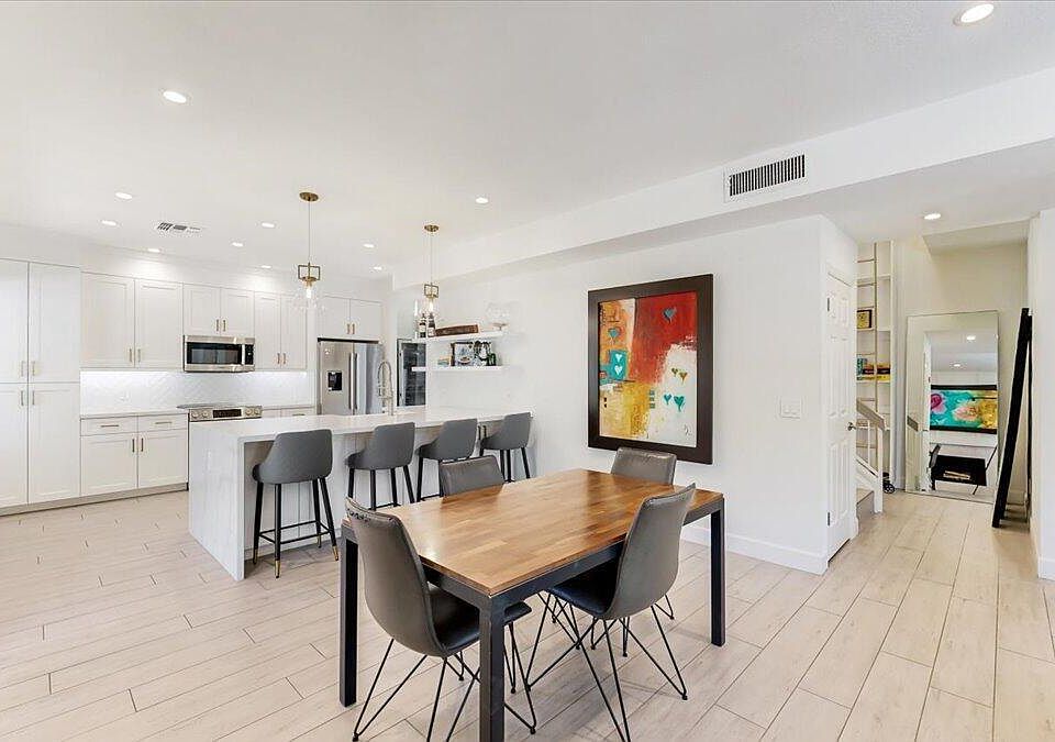 You will love this three-bedroom, three-bath, three-car garage, recently renovated home in the heart of Scottdale. The home has endless possibilities. Walk into the vaulted ceilings where a flex room is set up. The room can be made into a fourth bedroom, taking advantage of the bathroom with shower downstairs, or used for an office or dining room. The third garage bay can be made into a mother-in-law suite. Smart switches have been added for your smart home experience, use what's installed or expand on the current infrastructure. Large gray, wood-like plank tiles are in the entire home. The kitchen has white shaker cabinets and plenty of storage; the back side of the island has additional storage. Open concept allows for the kitchen to overlook the dining and living room. The laundry room is right off the garage and has a sink and lots of storage. The backyard has a pergola, a pool, outdoor shower plumbing, and is easy to maintain. The downstairs bath is next to the shower so people can access it from the pool with out going through the house. Bathrooms have been completely remodeled. The primary suite has an en suite with an updated gorgeous vanity and a renovated shower that is both simple and elegant. The primary bedroom is large, has a fireplace, and a walk-in closet. The landing has additional storage and a quartz countertop that coordinates with the kitchen countertop. The guest bedroom has a window seat and a designer closet. All three bedrooms are upstairs. The neighborhood has a private park and is centrally located near the 101 freeway, between Cactus and Shea and near a hospital, shopping, and dining.