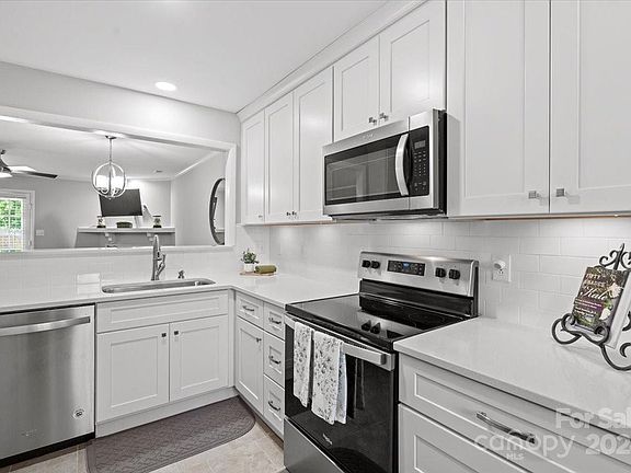 FULLY RENOVATED-Quiet All Brick Townhome Community in the Raintree Country Club Area of Charlotte with 43 homes nestled within acres of woods with common areas for strolling or walking your dog. This home has been beautifully updated with New Kitchen (White Quiet-Close Cabinets, New SS Appliances, Tile Flooring, Quartz countertops), New LVP Flooring throughout, new blinds, tiled primary shower with niche, New vanities with fogless mirrors and quartz countertops, closet systems for organizing, New wood tread stairs. All appliances will remain to include washer and dryer. Sidewalk to shopping at the Arboretum Area. Just a few miles to the restaurants and retail of Waverly, Rea Farms, Promenade on Providence, Stonecrest, and Providence Commons, groceries nearby-Whole Foods (2.4mi), Fresh Market (1.8mi), Trader Joes (2mi) and the new planned IKEA. Raintree Country Club is a walk away for golf, swimming and sports. Membership is a separate fee.