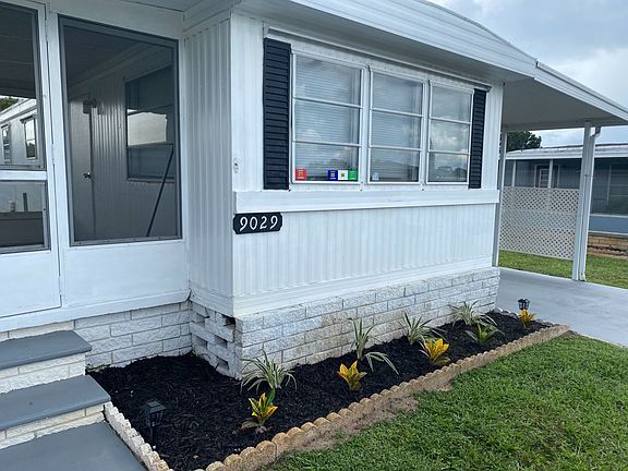 Partially Remodeled 2 bedroom, 1 bath mobile home in nice 55+ community with sparkling clean, heated pool! This lovely home has all new low maintenance vinyl flooring and fresh paint. Kitchen has new faucet, pantry, stove and refrigerator. All new blinds and light fixtures. Bathroom has new vanity top. Livingroom has plenty of windows for natural lighting. Lovely screened porch. The bedroom has a brand new window unit a/c. The home has been recently pressure washed. New seal coat on roof. Driveway and walk way has new paint. Water heater less than a year old. There is a storage unit in the carpet which has a washer/dryer connection. House is partially furnished. The community is pet friendly. Lot rent is $650 includes, trash, lawncare and the amenities. Water and sewer approx. $30 a month depending on usage.