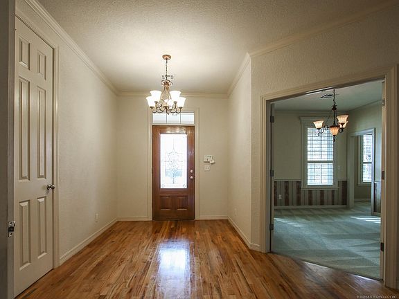 Desirable Twin Creek in Bixby schools located in a cul-de-sac. Offers 3+ bedrooms, three baths. Open kitchen with white cabinets, built-ins. Endless possibilities with flex rooms, upstairs game room. Master has options with possible exercise room, nursery. Possible dining room at entry, and office. Plantation shutters throughout. Loaded with extras. New windows, new appliances, Hydro flow gutters. Oversized walk out storage area. Outdoor living w/grill.