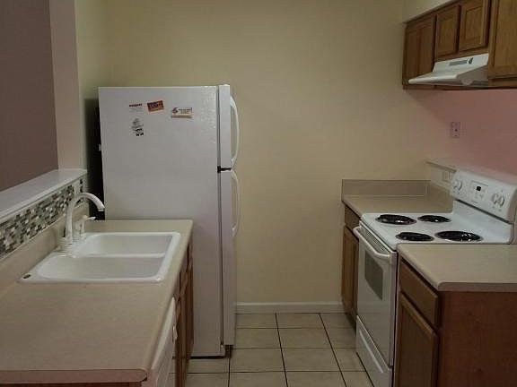 Great triplex 2 bedroom 2 bath unit with tiled dinging room, vaulted ceiling in living room, and open patio
