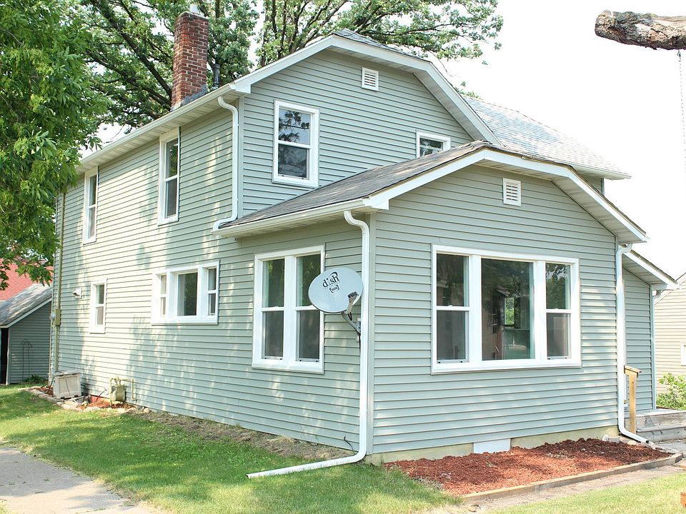 Darling 3 bed, 1 3/4 bath home located on corner lot close to downtown Glencoe, schools and churches. Completely updated with white millwork, luxury vinyl flooring, lighting and is move in ready for your family. Very bright custom kitchen includes stainless steel appliances, soft close cabinetry, quartz countertops and custom hood. Mudroom/back porch for the kids boots and coats or extra storage, very open floor plan for entertaining, large dining room with built in mirrored buffet, 4 season sunporch faces south so wonderful natural lighting, spacious front entry area and living room. Main level bed and 3/4 bath with new shower. Upper level features 2 large bedrooms plus office and full bathroom. New shingles on garage 2022. Maintenance free exterior and oversized garage with plenty of space for workshop.