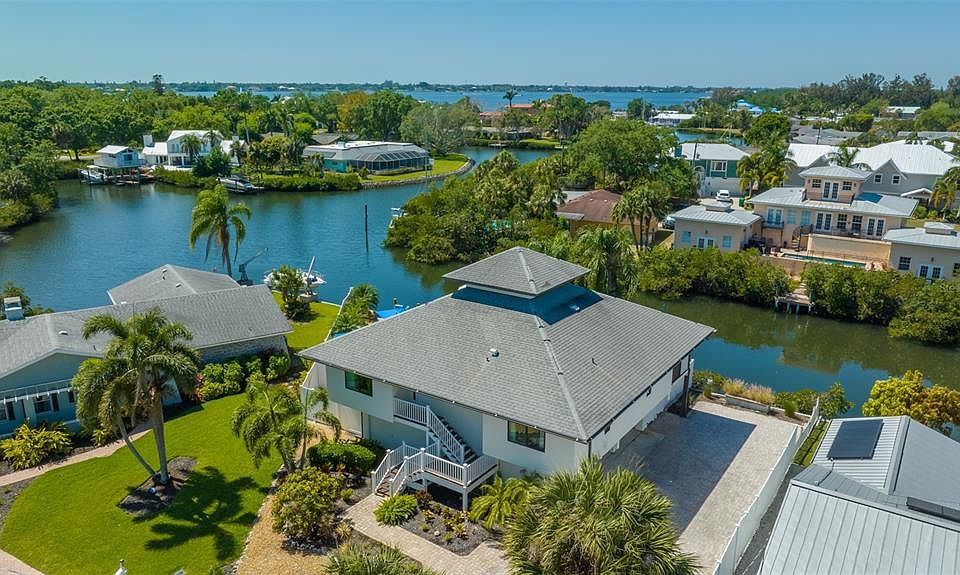 Amazing renovation…current homeowner has created a modern masterpiece while retaining the Rustic Charm of an Old Florida boathouse tucked away on a quiet Palmetto cul-de-sac…. Just under 1500 SF this coastal retreat is a raised 3 bdrm/2 bath home boasts soaring 16 ft ceilings that are vaulted and adorned with tons of whitewashed wood and windows. Cooking will be a treat in this gourmet kitchen with 42” white wood cabinets and soft close drawers that light up when opened and featured hideaway storage drawers, Double Fisher & Paykel dish drawers, 36” Samsung induction cooktop with commercial hood, Miele convection/microwave oven, Gaggenau steam oven, Thermador Counter depth refrigerator, farm sink topped off with stunning white Quartz waterfall countertops. Master suite features crown molding & wainscoting, stunning marble bathroom renovation, walk-in master closet features built-ins, gleaming hardwood floors, sliders to porch/balcony….2 guest suites and renovated bath on opposite end of house for a split plan with total privacy! Charming formal Dining room could also be used as office or den and great room features a built-in bar/dual zone wine fridge and beverage center. Back porch oozes with charm as you cozy up to your hanging swings overlooking the deep, saltwater canal and over 100 ft of seawall that will accommodate up to a 60 FT boat, water & power and pre-wired for a lift…all your toys are welcome here! No deed restrictions or HOA fees, you can park your boat trailer or camper along with whatever other vehicles will fit under your 3 space carport or your extended paver driveway! All windows/doors replaced with $72K hurricane impact throughout. 300+SF first floor is non-conforming but currently set up as guest suite with kitchenette and storage. Lounge in your heated pool/spa with ozone filtrations system and swim jets for stationary lap swimming. Pool deck features beautiful travertine tile and summer kitchen…you can catch your fish, filet it on the built-in fish cleaning station and cook it up on your gas grill, never even go up the stairs! Currently used as an AirBNB this home grosses $130K annually, perfect investment or amazing full or part time home-endless opportunities. NO Bridge to bay ... Located steps from the banks of the Manatee River on the southern edge of Palmetto, minutes to Snead Island, Anna Maria Island, boating to waterfront restaurants, Mattison’s, Pier 22, close to I-75, I275, airports, shopping and dining could all be yours! Bring your boat and enjoy the boating lifestyle.