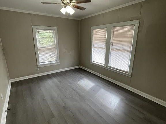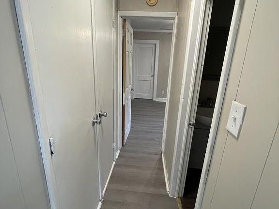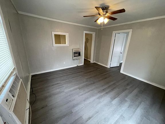 This charming 3 Bedroom, 1 Bathroom home with fresh flooring throughout is ready for its next family! The unique layout features a third bedroom built onto the second, making it ideal as a nursery, home office, or kids' room. A spacious kitchen with freshly painted cabinets adds a modern touch, while a full bathroom is conveniently located between the bedrooms, with hallway storage for added convenience. The home also includes a good sized laundry room and a carport built onto the home.