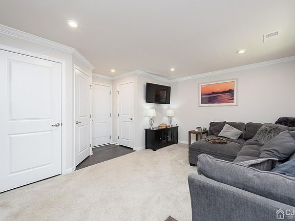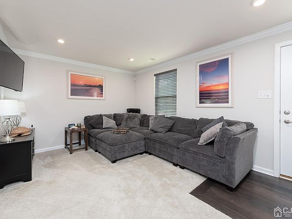 Welcome Home to this beautiful tri-level townhome that is a Commuter's Dream! Lower level offers roomy family room/den area, half bath with direct entry into the two car garage. Head up to the second floor to an open floor concept. Kitchen boasts white cabinets, large center island, granite countertops and stainless steel appliances with dining room area & sliding doors that opens to a quaint deck area, large living room w/crown molding also located on second floor. Upper level has primary suite w/9 foot tray ceiling, walk-in closet & full bath w/double vanity. Two additional bedrooms, full bath & laundry room complete this beautiful home! Access to boardwalk, beach, park & playground. Close to all, major highways, train, downtown shops and restaurants and the Jersey Shore. FERRY to New York City COMING SOON!! This is one of New Jersey's fastest growing communities! Open House Cancelled for 6/18