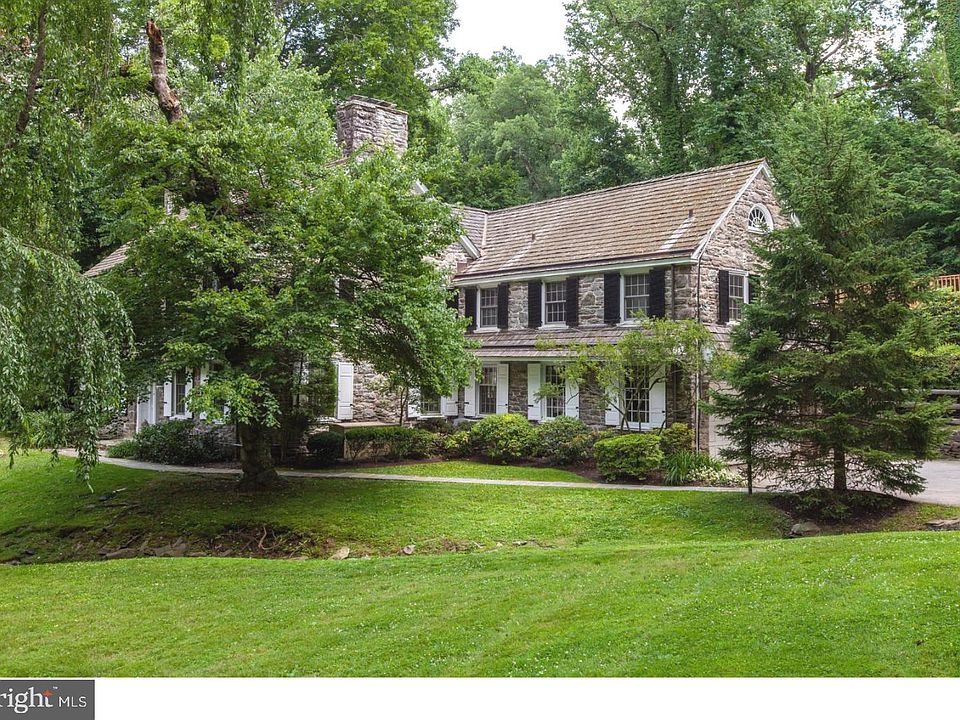 Quick Settlement Possible. Welcome Home! Charm & character abound in this stately three story Stone Colonial Home in the Penn Valley Neighborhood of Lower Merion. Situated on a picturesque 1.5 acre lot with public water & public sewer you get the best of both worlds with the feel of living in the country, but the convenience of shopping, restaurants & transportation nearby. With easy access to major interstates & highways, it's less than 30 minutes to Airport, Center City, King of Prussia & Valley Forge. First Level: Flagstone walkway to the covered entry featuring extra wide front door with two side lights, center hall extends the width of the home with access to large coat closet, powder room and exit to rear flagstone patio, formal living room with wood trimmed brick fireplace, chair rail, crown molding, and two sets of French doors to spacious side yard and rear patio, formal dining room with brick gas log fireplace, built-in scalloped hutch, chair rail, crown molding & deep sill windows, fabulous gourmet kitchen with wood cabinets - floor and ceiling, granite counters, Sub Zero refrigerator, dishwasher, garbage disposal, trash compactor, 6 burner gas cook-top, Viking oven, built-in microwave and extra wall oven, spacious breakfast room with exits to rear patio & attached two car garage, office area / Butler's Pantry, mudroom with coat closet & outside exit. Second Level: Wide staircase with Palladian arch window at landing with hallway leading to Master bedroom with fireplace, two closets & master bath, 3 additional bedrooms, Office/Study/Home Gyms, laundry room, tiled hall bath and storage area. Third Level: Two large bedrooms, skylights, cedar closet, full bath & ample closets for storage. Lower level: Two entrances to finished recreation room with over-sized fireplace, powder room, large unfinished area has utilities, former photography room/potential wine cellar & storage. Rear yard features in-ground heated pool with Hot Tub & huge wrap around deck, natural gas grill line, professional landscaping with mature trees, shrubs & perennial flower beds. Side yard has enclosed play area & front yard has stone bridge & private wooden bridge over stream. Beautiful random width pegged hardwood floors on first floor, refinished hardwood throughout remainder of home, unique wood trimmed windows with deep sills, front & rear stairways to second floor & lower level, 4 fireplaces, neutral colors & tasteful decor throughout. Possibilities are endless as you will see when you tour this exquisite home. Ideal home for Au Pair. 2020-08-07