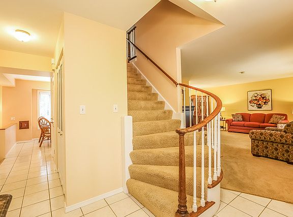 The ceramic tiled entrance hall welcomes you to this move-in ready two story home with covered front porch. Entertain in style in the formal living & dining rooms. The updated kitchen with breakfast area, ceramic tiled floor, granite counters & stainless steel appliances, opens to the family room with fireplace & sliders to the large deck with gas grill & professionally landscaped, fenced yard. The dramatic curved staircase takes you upstairs to four well-sized bedrooms including the en-suite master with generous closet space & updated bath. The hall bath has also been updated with a double vanity & whirlpool tub. Hardwood floors under all carpets except family room - take a peek in the upstairs linen closet to see the floor. The basement includes a recreation room with dry bar, laundry & ample storage. Newer windows, roof, siding, fence, high efficiency furnace, central air conditioning, water heater & concrete work, including garage floor, driveway, front sidewalk & front porch.