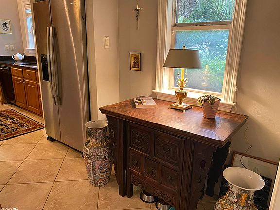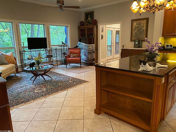 This beautiful custom built home has two separate entrances and a perfect split floor plan! No expense was spared on the finest of details. The center of this wonderful home opens up to a spacious kitchen and living area. The high ceilings are decorated with deep crown molding in every room. The kitchen includes stainless steel -top of the line appliances, granite countertops, and solid wood custom cabinets. Italian travertine tile is used throughout the home. The entire house has gorgeous scenic views of mature trees from every room. A picture does not do it justice. You have to see it! It is magnificent! It is currently set up as a two bedroom and 2 bath for either an adult child living at home, but can be easily be reverted back to being used as a three bedroom by simply removing the sheetrock panel and adding back a door to the large closet between the two rooms. Prior to the current owner, the 3rd bedroom was used as a home business office. Located at the end of a cul-de-sac offers plenty of privacy galore and space to bring the family boat. A spring fed creek is running through the property right behind the home at the bottom of the hill. It is part of the Yancey Branch Watershed. It discharges into Mobile Bay. This home is very convenient to the Daphne schools and local restaurants. Per Seller: This home has infrastructure to build a two story building next to home and subject to city approval. The brand new refrigerator and art studio are “negotiable”. The kitchen chandelier does not convey.