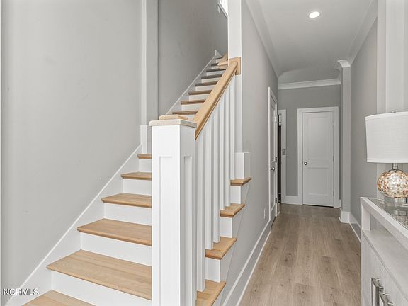 Welcome to your dream coastal retreat in Carolina Beach! This exquisite new construction single family home embodies luxury living with its stunning design, and breathtaking views of both the ocean and sound. Boasting 4 bedrooms, each accompanied by its own ensuite bathroom, and an additional 1/2 bath on the main level, this residence offers the pinnacle of comfort and convenience. The open floor plan creates a seamless flow between spaces, providing an ideal setting for entertaining and relaxation. The spacious living area is bathed in natural light, thanks to expansive windows that frame the picturesque vistas outside. The heart of this home is undoubtedly the gourmet kitchen. Crafted for both beauty and functionality, it features quartz countertops that perfectly complement the chic tile backsplash. High-end KitchenAid appliances elevate your culinary experience, making meal preparation a joy. The open layout ensures that the kitchen seamlessly transitions to the living area, enabling you to remain engaged with guests while showcasing your culinary skills. As you ascend to the upper level, the panoramic ocean and sound views continue to steal the show. Retreat to the top floor, where the primary bedroom awaits. This sanctuary offers not only an ensuite bathroom but also access to a vast deck that is a true outdoor oasis. Whether you're sipping your morning coffee, indulging in an evening cocktail, or hosting a gathering under the starlit sky, this deck is the ultimate backdrop for unforgettable moments. Convenience meets luxury with the inclusion of an elevator, ensuring easy access to every level of this remarkable home. Beyond its captivating interior, the location of this property is a true gem.