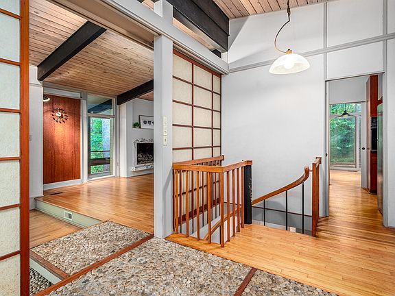 RARE MCM GEM -- you WON'T find this again: the opportunity to own an NC Modernist time capsule masterpiece at an affordable price with the chance to make it your own, MINUTES from UNC, in the woods, and steps from the Botanical Gardens and Morgan Creek?! Nope, doesn't exist until now. This jaw-dropper has all the right bits: clerestory and floor-to-ceiling windows, wrap around decking, Japanese-inspired lighting, hardware, and shoji-screens. Spiral stair, hardwoods, and high end decking: YES PLEASE. Bring your contractor and designer and make it yours.