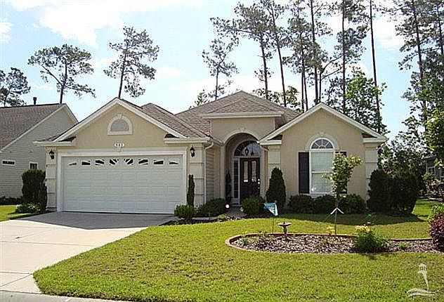 Light, bright, open and airy and in excellent condition!! Great location with a wooded back yard for privacy. The living room has high ceilings, laminate flooring and this Eaton plan opens nicely to the kitchen. Large breakfast area and a wonderful kitchen with loads of upgraded cabinets and beveled edge counter space! Special features include 2' extension in the front bedroom, security system, lawn irrigation and more! Well maintained and rarely used. Call this home today. Subdivision offers unlimited local and long distance telephone, DSL and cable along with pool, playground, exercise room and clubhouse included in the dues. The location is convenient to many golf courses, beaches, dining and shopping!