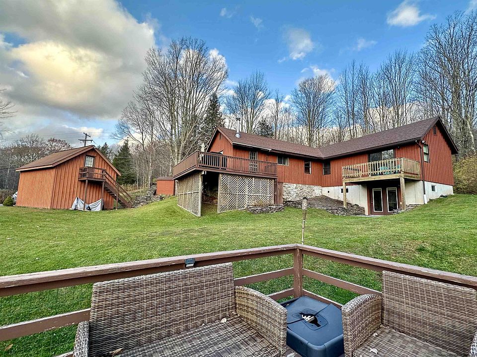 La Casa Roja. this is a WOW - turnkey 4BR/2bath Catskills Retreat that checks off every box...dramatic mountain views, sparkling pool with a wrap-around deck, cozy fire pit for S'mores and stargazing, adjacent to 300+ acres of NYC land (yes, step off your property and start hiking) and later take in the glorious evening sunsets off of two decks on the cabin! Inside enjoy rustic vibes with beautiful covered porch, exposed beam detail, perfect wood-burning stove and an updated kitchen with an open-floor plan where everyone will want to hang. Ideal location 7 miles from Belleayre Ski and 9 miles from Plattekill Mountain. Minutes to Fleischmanns with great offerings (local cheese at Two Stones Cheese, Greek food at Aegean Flavor, fab coffee and treats at Village East, live music drinks and food at The Print House and 1053 Gallery leads the cultural scene). Take the other side of the Mountain to Roxbury and you land in a Norman-Rockwell like village with amazing restaurants, the famous Pakatakan Farm Market and more! Property has a very strong Airbnb history with year-round income opportunities. Only 2 hours from the GWB and close to all area attractions. YOUR CATSKILL DREAM AWAITS