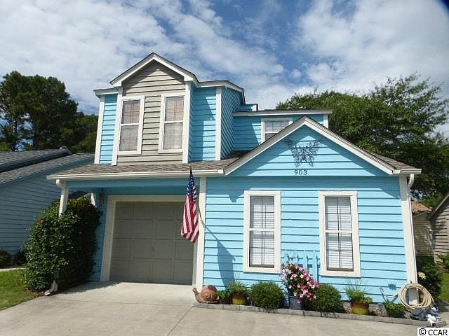 Location, location, location! Golf cart to the beach, shopping or dining from this charming home in the Lakes Homes at Belle Park. This home is one of the largest in the neighborhood and features a spacious family room with vaulted ceilings, lots of windows and a fireplace. The spacious kitchen boasts a breakfast room, plentiful cabinets and recently updated appliances. The first floor master bedroom is very large and also has vaulted ceilings ad a big closet. Upstairs are two bedrooms and a full bath. The courtyard patio has a privacy fence and the entire back yard is fenced and ready for your four legged family member. Take a short stroll to the community pool to cool off or catch some rays. Not into yard work? The community maintains the front and side yards of the well maintained home. There is lots of storage in the one car garage for all your beach chairs and water toys and golf cart. The community is conveniently located near Main Street North Myrtle Beach where all the SOS action happens and just a short drive to fun attractions such as Barefoot Landing. This is an ideal full time or second home that is waiting just for you.