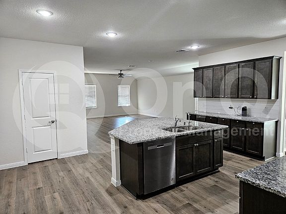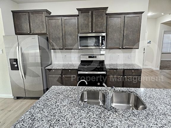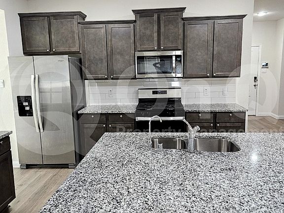 Built in 2023, this stunning 2,039 SQ FT single-story home offers 4 bedrooms and 2 bathrooms on a 7,500 SQ FT lot. The modern kitchen is equipped with stainless steel appliances, including a refrigerator, oven, microwave, dishwasher, and garbage disposal, plus a water softener and reverse osmosis system for added convenience. The open living and dining areas feature a bright and airy layout with ceiling fans and a breakfast bar perfect for casual meals. The primary bedroom includes a spacious walk-in closet and an ensuite bath with stylish finishes. Three additional bedrooms share a full guest bathroom, offering comfort and flexibility for family or guests. A separate laundry room with a washer and dryer adds practicality. The home also features a 2-car garage with an automatic door opener and a landscaped grass yard ideal for outdoor relaxation. Located within an HOA community, this property combines modern comfort with a well-maintained neighborhood setting.