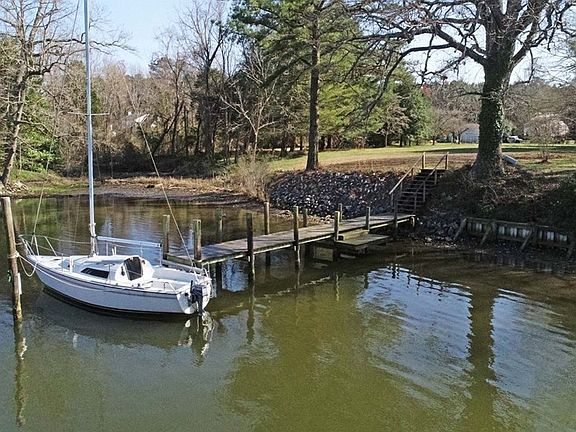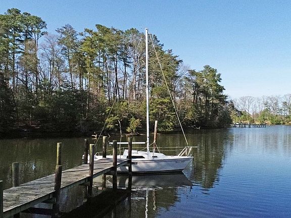 Waterfront Farmhouse with 8+ Acres on Indian Creek just off the Chesapeake Bay....plus less than 5 minutes to the town of Kilmarnock! The property has a pier with 4'MLW (nice deep protected cove) with no flood zone. Beautiful grounds surround this home with Dogwoods, Cherry Trees, bulbs, Tree-lined drive with mature Crepe Myrtle's, & ample area to play, garden or build more! The detached dependencies are a two-story 2-car garage & a fabulous chicken coop with plumbing & a brick chimney! The 1916 Farmhouse has all the charm of yesteryear with the modern needs of today! High ceilings, beautiful wood work, 1st floor with hardwood floors (protected under carpet currently), Fireplace in the Living Room, Lovely Sunroom, 1st floor Master Suite with attached bath & sliding door to deck, 4 Bedrooms total, & more! Home is in great condition & has been rented to great renters. *Home is being Sold As-Is & has been priced accordingly.* Recent Improvements including windows, siding, dock, rip rap, HVAC, some appliances & more in last 10+ years. Want to have a quiet county life? Chickens, garden + Waterfront? This is the perfect place!!