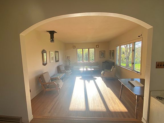 Seven unencumbered acres in Johnson for your enjoyment. This mid size ranch offers established grounds, with views, a 2 car garage and large pole barn. A large breezeway/mudroom welcomes you home. A kitchen and half bath are just inside the mudroom entranced. Lovely archways guide the flow through the main living area, with a large dining room with views, to a step down large living room. Wood floors and large bedrooms complete the home. A must see....
