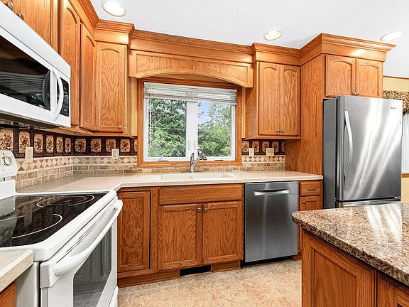 This is a 4 bedroom/2 bath home in Cloquet that has had excellent care. On the main level you have a foyer leading to the lower and main levels and the attached garage, then up a few stairs to a massive living room, an updated kitchen with custom cabinets and newer appliances, a dining area with a sliding glass door leading to a 12x15 deck overlooking the groomed back yard. You will also find a full bath and 2 good sized bedrooms on the main level. On the lower level there is a family room with a gas fireplace, a remodeled 3/4 bath, utility/laundry room and 2 more bedrooms. The front and sliding glass doors were replaced in 2022, the basement bath remodeled in 2018. Outside you will find a paved driveway installed in 2021, and a good sized yard. The roof was replaced last year. This home has been well taken care of with many updates, it is move in ready. Come take a look.