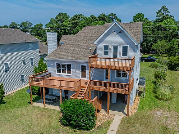 Welcome to your dream waterfront retreat in the sought-after, guard-gated community of Colington Harbour! This stunning 3-bedroom, 2-bath home offers 63 feet of waterfront on the breathtaking Albemarle Sound. With panoramic views from nearly every room, you'll find yourself surrounded by the beauty of the water, inviting you to kick back, relax, and entertain with ease on the expansive waterside decks and patio areas. Plus, this property comes with a rental projection of $41,245, making it an excellent investment opportunity. Step inside and be greeted by a bright and airy open floor plan with vaulted ceilings, perfect for the laid-back coastal lifestyle. The master suite is a true haven, featuring a spacious walk-in closet, access to a private sun deck, and a cozy loft area. Pamper yourself in the luxurious ensuite bathroom, complete with a double-bowl vanity and a custom walk-in shower that offers a spa-like experience every day. The first floor is designed for easy living, featuring a spacious great room, a modern kitchen, and a dining area, all beautifully updated. Two additional bedrooms and a full bath make this level perfect for family and friends to enjoy. Plantation-style blinds add a touch of coastal elegance throughout this charming home. Plus, the ground level offers a garage and workshop for convenience, ensuring you have a dry entry on those occasional rainy days. For the boating enthusiast, this property is a true paradise. Enjoy your own 30' pier, a 6,000 lb boat lift, and a lower deck ideal for launching kayaks. Whether you love fishing, kayaking, paddle boarding, or windsurfing, your backyard has it all! A fish cleaning station, an outdoor shower, and beautiful landscaping make it easy to embrace the outdoor lifestyle.  Living in Colington Harbour means you'll be part of a vibrant coastal community. Consider joining the exclusive Colington Harbour Yacht Club, where you can enjoy the community clubhouse with stunning soundfront views, two outdoor pools, tennis courts, and more. It's a fantastic spot for celebrations, work retreats, or just soaking in the laid-back atmosphere. Take a short stroll to Colington Harbour Soundfront Park, where sandy beaches, shady picnic areas, and a spacious swimming area await. The gentle waters are perfect for kids, making it a fun and safe spot for family adventures. When it's time to explore local flavors, you're in for a treat! Savor mouthwatering seafood at the Colington Café or Salt Box Café, two of the Outer Banks' finest. For a more casual vibe, head over to the Blue Crab Tavern to enjoy a cold beer, shoot some pool, and make new friends. Don't miss your chance to own a piece of paradise in Colington Harbour. Schedule your private tour today and experience the magic of waterfront living! Owner will consider owner financing with the right offer!