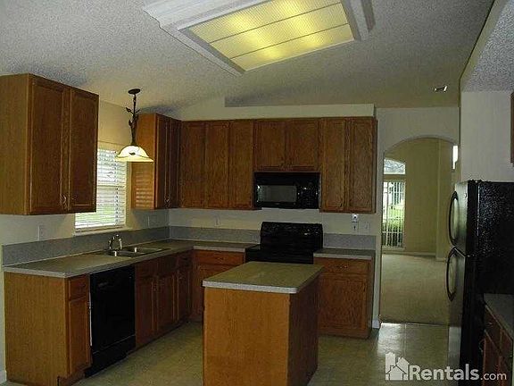 R$1400 D$1400 This beautiful 3/2 with den and 2 car garage in the Cedar North Subdivision. This home features an oversized living room, a large eat in kitchen equipped with all black appliances, stove, fridge, dishwasher and microwave and the kitchen has a center bar with lots of cabinets and counter top space. There is a den with fireplace and hardwood floors, very large master bedroom walk in closets, a large master bathroom with double sink vanity, separate shower and garden tub. This home has upgraded ceiling fans and light fixtures, utility room with washer dryer connections and central a/c. DIRECTIONS: 95N, L on Dunn Ave, R on Harts Rd, L on Heritage Lakes Drive