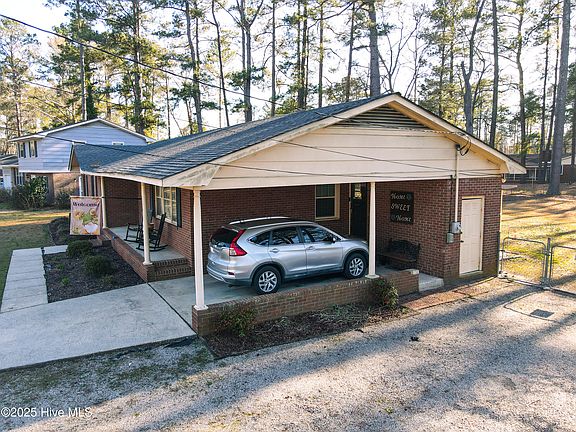 The back yard is fenced in, there are storage buildings on the property, a 1 car carport, and covered front porch.