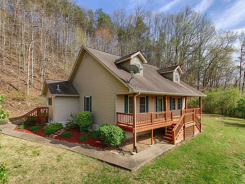 Enjoy wonderful mountain views from this charming cape cod style home. This custom built, well kept home is move in ready with 3BR/2BA on main, spacious Kitchen/Dining combo w/breakfast bar & pantry. Beautiful gas log FP is the focal point of the lovely Living rm. Beautiful Hardwood floors. Large laundry/Mud room. Large bonus room upstairs could be used for a 4th bedroom, office, media room, playroom, etc. Front & rear covered porches to enjoy your private mountain retreat. Buyer to verify all measurements and square footage.