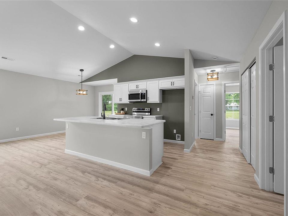 - Kitchen/Dining Room Combo, Cathedral Ceiling(s), Kitchen Island