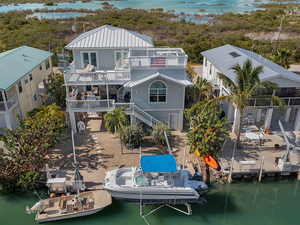 Wake up to the breathtaking beauty of Ramrod Key in this extraordinary multi-level coastal retreat. This meticulously designed home offers a harmonious blend of elegance, convenience, and the tranquil charm of oceanfront living. With its captivating views and thoughtful amenities, it's an ideal sanctuary for those who cherish the sea. Upon entering, you'll be greeted by a spacious living room bathed in natural light. Patio access invite the outdoors in, creating a seamless connection between interior comfort and exterior beauty. The adjacent dining area sets the stage for memorable meals and lively conversations. The open-concept kitchen is a chef's delight with ample counter prep space and breakfast bar overlooking the living room. The main floor accommodates two well-appointed guest bedrooms, each featuring impact doors that lead to private balconies and an expansive entertaining deck. Whether you're enjoying morning coffee or stargazing at night, these spaces offer serene escapes. A modern full bathroom with water closet serves this level, combining luxury with practicality. Ascending to the second floor, you'll discover the ultimate retreat--the primary suite. This luxurious space boasts a generously sized en suite bathroom with double sinks, updated shower, and a spacious walk-in closet. Impact doors open onto a sunning deck, where you'll be mesmerized by panoramic ocean and salt pond views. A second-floor loft landing leads to an additional private balcony, perfect for quiet reflection or soaking in the natural surroundings. Outside, the property truly shines. A 10K boat lift, kayak launch, davit, and concrete dock offer unparalleled access to open waters, making this a haven for boating and fishing enthusiasts. Ample downstairs storage ensures room for all your outdoor equipment, while thoughtfully designed indoor and outdoor entertaining areas. A one-car garage and ample parking add convenience. Don't miss your chance to own a piece of paradise.