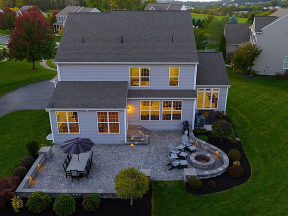 Check out this 4 bedroom, 2.5 bath Colonial located on the best lot in Sage Hill neighborhood, Dallastown School District! Featuring a bright open layout, backing up to open green space, outdoor entertaining area, and private flat lot at the end of the cul-de-sac. Expansive paver patio includes a built in firepit and lighting. The interior layout flows perfectly. The chef in the family will love the gourmet kitchen to include a stainless steel appliances, double oven, center island, and a breakfast room that opens directly into the family room - ideal for entertaining. The family room is highlighted by a gas fireplace and offers wonderful views of the nicely landscaped yard. Also on the main level is a formal dining room with double archways, a living room/sitting room, and a laundry room. The upper level features 4 spacious bedrooms that includes a master suite. Most of the bedrooms have walk in closets and a guest bath completes the upper level. The lower level can easily be finished into additional living space with a roughed in full bathroom and featuring a recently added HVAC system to include a new whole-house humidifier with an in-duct air purification and disinfection UV light system. Not only will the home owner love the outdoor patio area, but also the large oversized storage shed with double door access, a ramp, and a fenced in manicured garden area. Great location! Walking distance to the local neighborhood park and minutes to golfing, restaurants, shopping and local amenities.