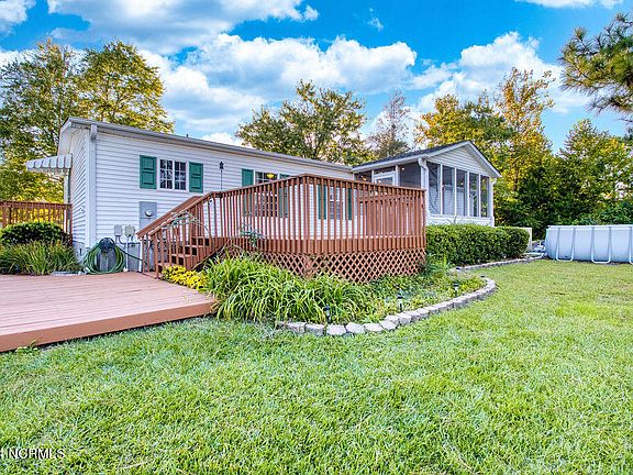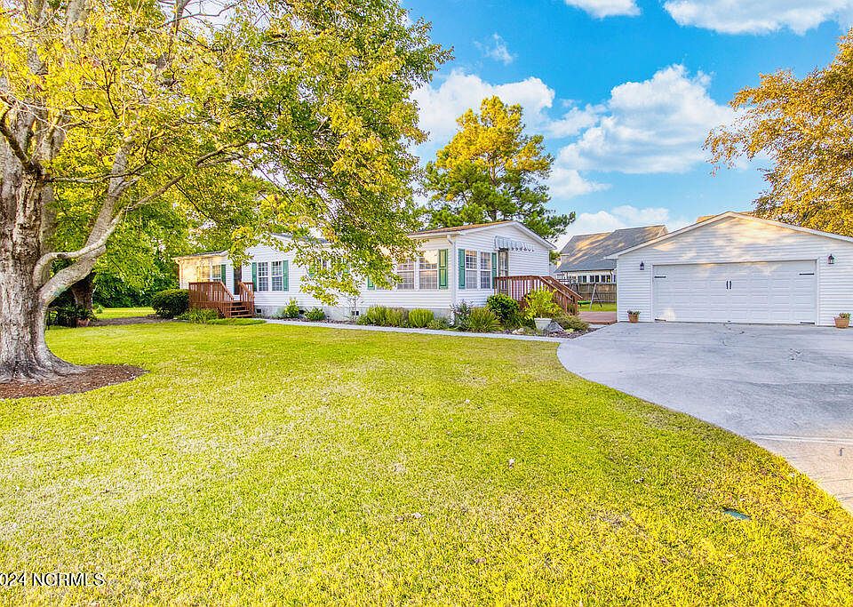 Location Location! Don't miss this to this beautiful 3 bedroom 2 bath home located in the beautiful community of Topsail Greens. Boasting tons of character, this home sits on a large lot with gorgeous landscaping, mature trees for plenty of privacy, and an incredible garden already set up for growing all of your own fruits and veggies. You'll find plenty of space in this split floor plan with LVP floors and fresh paint throughout. Cozy up to the stack stone wood burning fireplace in the large living room with vaulted ceilings, which open to a formal dining area, perfect for entertaining. Enjoy the cool mornings with a cup of coffee on the screened porch and grill at night on the large open deck, overlooking the gorgeous backyard. A nice open kitchen with an eat-in breakfast area is a chef's dream for hosting friends and family, with 2 pantry closets for storage. The primary suite offers a great space with a large closet and ensuite bathroom featuring double sinks, a relaxing soaking tub, and separate shower. Additional bedrooms also feature beautiful natural light and large closets. Home also features a whole house air filtering/sanitizing filter to ensure clean air. Another wonderful feature is the detached, 2 car garage with an amazing office space, perfect for those that work from home or just need an extra bonus space! Enjoy the HOA amenities that provide water, sewer, trash services, and lawn maintenance! This home is perfectly located in the Award Winning Topsail School District, approximately 30 minutes to Wilmington, and just a short drive to the beautiful beaches of Topsail Island.