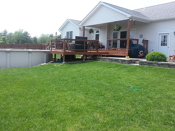 Beautiful home custom built in 2007. Home features 5 bedrooms, 3 full bath with hardwood floors, stainless steel appliances, concrete counter tops, surround sound wired with speakers, large master bedroom with full master bath, separate shower, and jetted tub. Full finished basement with 9 foot ceilings, large family room, additional full kitchen, 2 bedrooms, full bath, and office. Large storage room in basement with built in shelves for plenty of storage. Backyard has privacy fence with large patio and covered deck. Pool was converted in 2014 to salt water for minimum maintenance. Garage is over sized for plenty of parking and extra space. This home is a must see!