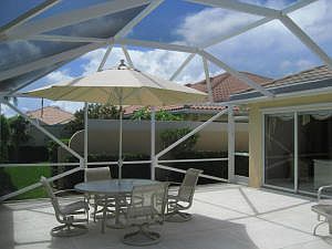 DiVosta built Capri w/EXTENDED Family Room provides an additional 165 Sq.Ft. of air cond living area compared to a standard Capri. Cul-de-sac location! Screened patio w/desirable SOUTH exposure & tropically landscaped yard provides excellent privacy for relaxing with morning coffee or working on your suntan - patio is sunny all day! Snowbirds - Excellent opportunity: This light & bright home is avail fully furnished / turnkey with china, crystal, cookware, utensils, linens for an additional $15K. Just move right in! Custom mirrored entry foyer & Master BR. Tile throughout Kitchen, Dining & Family Room. Living Rm incl 11' volume ceiling & built-in entertainment cabinet. All meas are approx. Master BR overlooks patio & incl walk-in closet. All closets include built-in organizers. (More...)