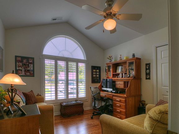 Quiet, leisurely living at the Villages At Swansboro is the good life, but this home makes it an amazing life for 55+ community residents. Many upgrades including Bosch dishwasher (2015), Jenn Air Refrigerator, Kitchen Aid Gas cooktop and top of the line garbage disposal. Ceramic sink built into hard surface countertop with LED lighting accenting cherry cabinet and pantry. The open floor plan features kitchen, living room with gas fireplace, dining and office. 3 bedrooms, 2 baths with master bedroom walk in closet and shower. Best quality plantation shutters in every window and the sliding glass door, which leads to a large deck of composite flooring, vinyl railing and a plant watering system. Gutters on this entire home and patio furniture complete a package waiting for its new homeowner