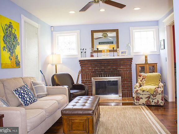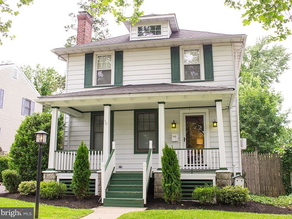 Wonderfully located 4 square colonial in Palmyra. Completely updated and shows wonderfully. Very nice curb appeal as you arrive to a covered front porch. The newer front doors add a certain richness to the curb appeal. Enter into a small foyer typical of a four square colonial build. This leads directly into the cozy living room with hardwood flooring, extra windows for natural light and a brick fireplace. A large dining room with hardwood flooring offers nice architectural features also allowing for extra natural light. The kitchen has newer stainless steel appliances a breakfast bar that overlooks the dining room and a newer door leading to the back yard. Access to the basement is in the kitchen. The basement is partially finished with wood laminate flooring, a FULL bathroom, laundry room area and Bilco doors to the rear yard. There is additional storage area in the basement along with newer heater and hot water heater. The second floor offers three nice sized bedrooms all with their own air conditioning units. The main bathroom is totally renovated and shows like a dream. There is a full walk up attic that can be used for all your storage needs or for potential additional living space. The rear yard offers a nice flex space with a ground level deck and an oversized two plus car garage that any garage enthusiast will surely enjoy. There really is not much to do here as the owners have provided the next purchaser with a newer roof, newer systems, new sidewalk and driveway cinder and a well updated interior with fresher paint throughout. The location is ideal on the borders of Palmyra, Cinnaminson and Riverton tucked in a quiet less traveled spot. If you are looking for that garage to store your toys or to make the ideal man/woman cave this is a must to add to your list.