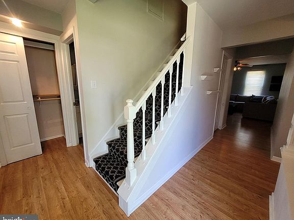 Fantastic location! This 3 bedroom 2 full bathroom 2 half bathroom unit has an eat-in kitchen with stainless steel appliances, living room with gas fireplace, recessed lights, crown molding and ceiling fan, and dining area with sliding glass doors leading to the trek deck with vinyl fencing. There is a stackable washer and dryer on the main floor. The lower level basement has 1/2 bathroom, den, office area and family room that walks out to the backyard. Upstairs features 3 generous size bedrooms with hall bathroom. Main bedroom has walk-in closet with organizers and bathroom with storage. There is additional parking for guests in the parking lot.