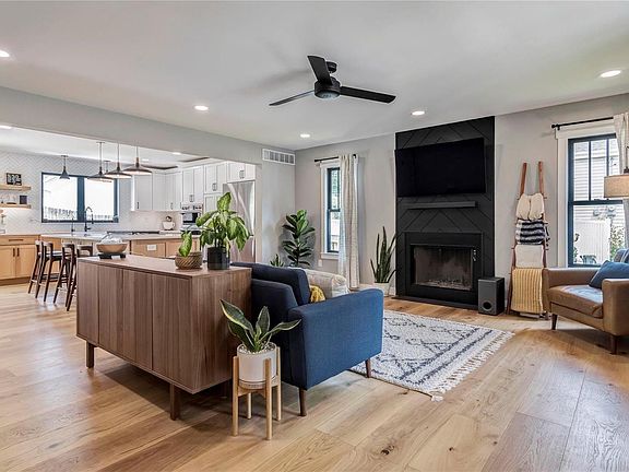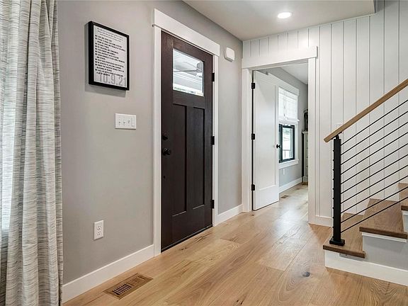 ONE OF A KIND Craftsman 1.5-story offers NEW HOME CONVENIENCE in a historic neighborhood setting. Built in 2022 on a corner lot with charming COVERED PORCH, iron railing, upscale fiber cement siding with shake detail, rear-entry garage & guest parking. Bright living room with cozy fireplace & HARDWOOD wide plank floors. Custom kitchen with 42" cabinets, crown, huge CENTER ISLAND bar, QUARTZ COUNTERS, display shelves, pendant lighting & STAINLESS APPLIANCES. Dining room with French doors to HUGE PATIO - ideal for entertaining. Relaxing MAIN FLOOR OWNERS SUITE with WALK-IN CLOSET, built-in storage & step-in shower. Upstairs secondary bedrooms share full bath with tub/shower combo. Upgrades include premium soundproofing/insulation, holiday light controls, fiber internet, anti-frost exterior hoses & dog wash area in laundry room. Downstairs TONS OF STORAGE plus egress window & rough-in bath for easy future finish. WALKABLE LOCATION near Highways 70/370/94/141 & AWARD-WINNING SCHOOLS. Some Accessible Features