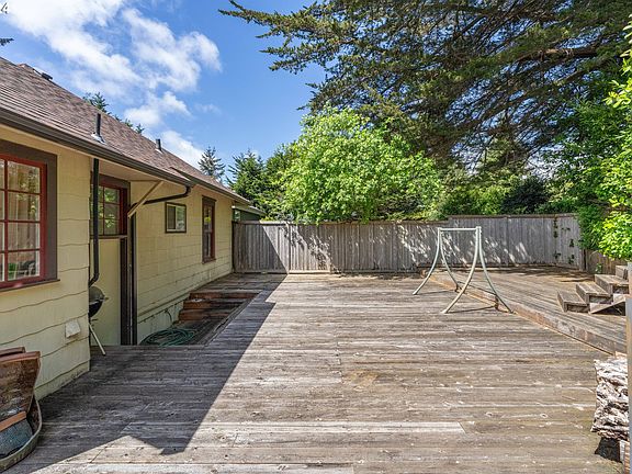 Looking for a Great Home not far from Mingus Park and the Heart of Downtown Coos Bay? Well here it is! Located on the Corner of Date and N. 8th, this Charming Bungalow sits on a Large Private Corner Lot that is surrounded by Mature Trees and Hedging. There is Off Street Parking and RV Parking Behind a Large gate. The Front of the Home has an Enclosed Sunporch nice for getting out of the Rain or enjoying the Sunshine. As you enter there is a Sitting Area and You immediately notice the Beautiful Trim and Hardwood Flooring throughout. Then there is a Formal Dining Room with Wainscoting and Sliding Door to the Deck. The Living Room has Original Hardwood Floors, Large Windows, Wood Stove, and is nice sized and cozy, both. The Kitchen is Cute with its White Cabinets, Custom Eating Bar, Wood Countertops, Hardwood Flooring, and again Lots of Natural Light from the Windows. The Primary Suite is on the Main Level and has Hardwood Flooring, nice sized Closets, and the En-Suite Bathroom. The Connected Primary Bath has a Beautiful Soaking Tub, Hardwood Floors and a 2 Sink Vanity. The Second Bath is also on the Main Level and is Updated with a Walk in Shower. In addition the Laundry Room is on the Main Level and includes the Washer and Dryer. The Home is COMING FULLY FURNISHED ready for the New Owners! The Second and Third Bedrooms are on the Upper Level. Both of the Upper Bedrooms are Nice with Great Furnishings. The Home has Plenty of Private Outdoor Living Space and is Surrounded by Decks. The Yard also has a Nice Upper Terraced Grassy Area. This is a Great Home and a MUST SEE to appreciate. WATCH THE VIDEO/VIRTUAL TOUR and Call for a Showing Today!