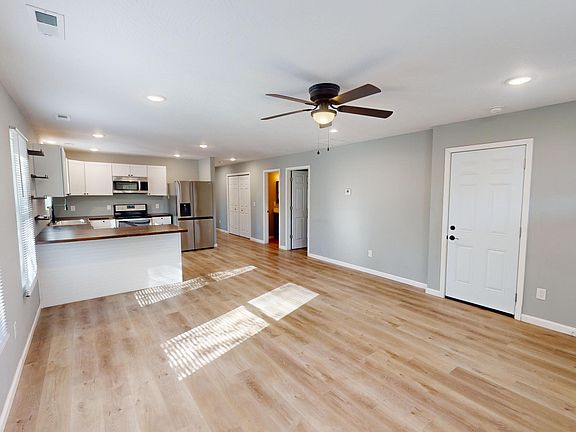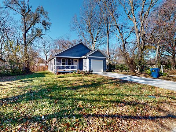 Open house Sat, 02/15 2-4pm. Do not miss the 3D Matterport virtual tour attached to the listing. Constructed in 2023, this nearly new home offers three bedrooms and two bathrooms in a bright and open floor plan. The living, dining, and kitchen areas flow seamlessly, enhanced by large windows, recessed lighting, and light finishes that create an airy atmosphere. The modern kitchen boasts wood countertops, stainless steel appliances, white cabinetry, and a peninsula for extra prep space, complemented by stylish floating shelves. The primary bedroom includes a private en suite bathroom, providing a comfortable retreat. Outdoors, enjoy the covered front porch and the privacy of a fenced backyard. Conveniently located just one block from the elementary school. A one-year home warranty is included, offering added peace of mind for the new owner. Schedule your private showing today!