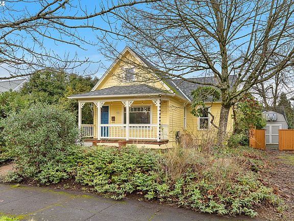 Charming single level Victorian in coveted Woodlawn! Hardwood floors, large kitchen with gas range and tile floors, beautiful hall bath with walk-in shower and primary suite with hardwood floors and ceiling fan. Fenced rear yard with storage shed and chicken coop, inviting front porch and mature landscaping with fruit trees. Walk score of 80 and bike score of 96! Just blocks to pizza, cafes, restaurants, groceries and award-winning brewery. Vintage architectural elements with the benefit of modern touches. The perfect place to call home! [Home Energy Score = 7. HES Report at https://rpt.greenbuildingregistry.com/hes/OR10200377]
