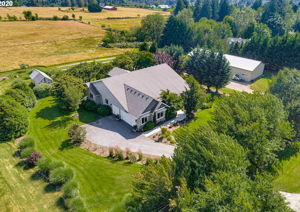 Slice of paradise! Gorgeous one-level home on 5 flat usable acres! Soaring ceilings, wall of windows & open floor plan! Beautifully remodeled kitchen w/quartz countertops. Wrap around porch and covered deck to enjoy the peaceful setting! HUGE 60x45 shop w/lean to has concrete floors, power, RV doors, loft & office! Greenhouse, garden shed & chicken coop. Pasture, garden, raised planter beds & fruit trees! Home-based business/hobby farm/horse property.